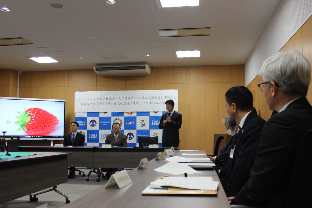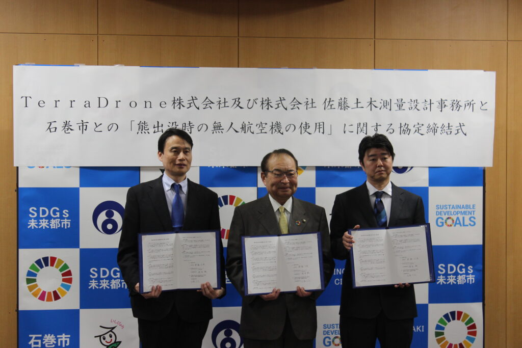 令和8年1月19日、石巻市、TerraDrone株式会社及び弊社の三者にて「熊出没時の無人航空機の使用」に関する協定を締結いたしました。